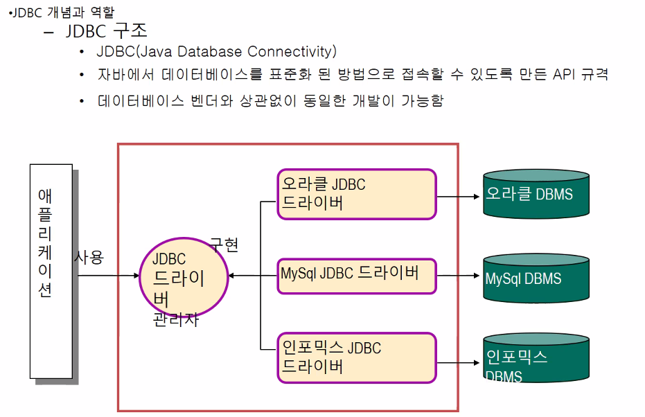 연동만 해주면 Database 환경과 무관하게 표준화된 방법으로 사용할 수 있다.