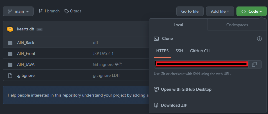 zip 파일로 받기파일 통째로 주기- git 명령어 사용하기
