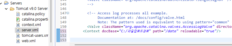 <Context docBase="C:/원하는 경로" path="/서버에서 사용될 이름" reloadable="true"/>